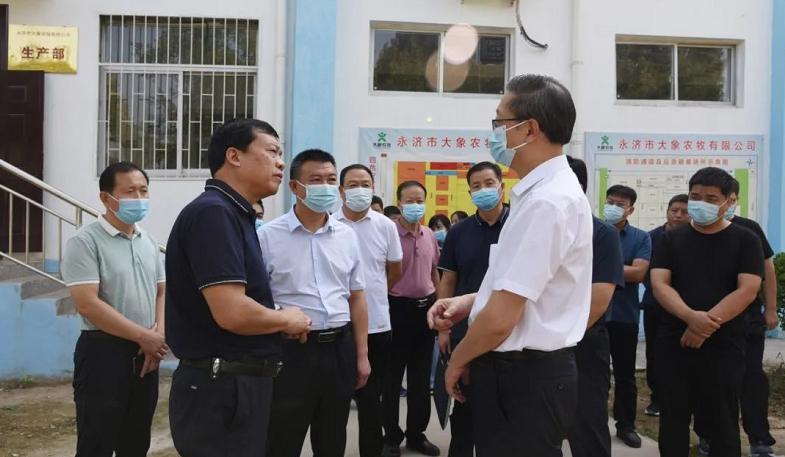 9月15日,运城市政协副主席张宏志带队来到山西永济市大象农牧有限公司参观,就公司生产经营情况进行调研指导,永济市市长谢澎、市政协主席张廷耀参加活动。运城区域一体化总经理石喜桂陪同。