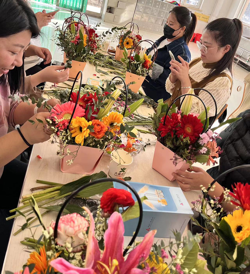 阳春三月,春意浓浓。中国银行太原平阳支行来访博鱼官方网页版_博鱼(中国),农牧总部,开展女员工插花活动,在总部办公的近30名女性参加活动。
