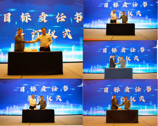 会议最后,董事会与经营层、总裁办与各产业及各产业和事业部、分部分别签订了2023年经营目标责任书和安全生产责任书。