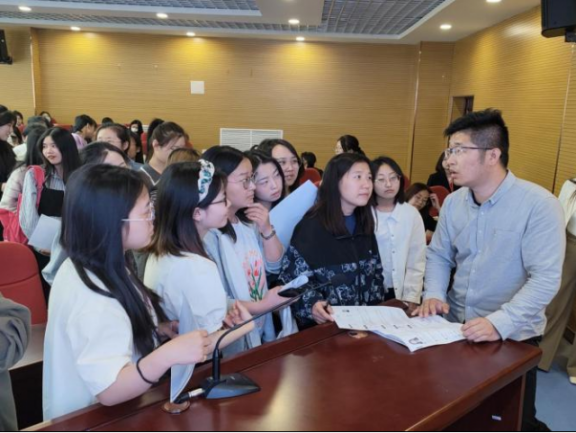宣讲会上,孙总就目前集团的经营现状、发展历程、合作模式、人才理念进行了介绍,并发布了招聘需求及岗位。现场气氛活跃,学生积极提问,参会负责人耐心解答,结束后学生纷纷投递简历,学院党委书记武全还与孙总就实习实践基地、校企人才对接等方面进行了会谈。